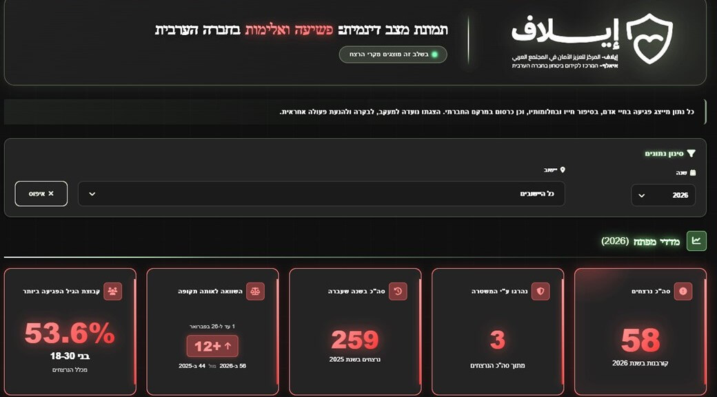 תמונת מצב דינמית: פשיעה ואלימות בחברה הערבית. באדיבות אילאף – המרכז לקידום ביטחון בחברה הערבית